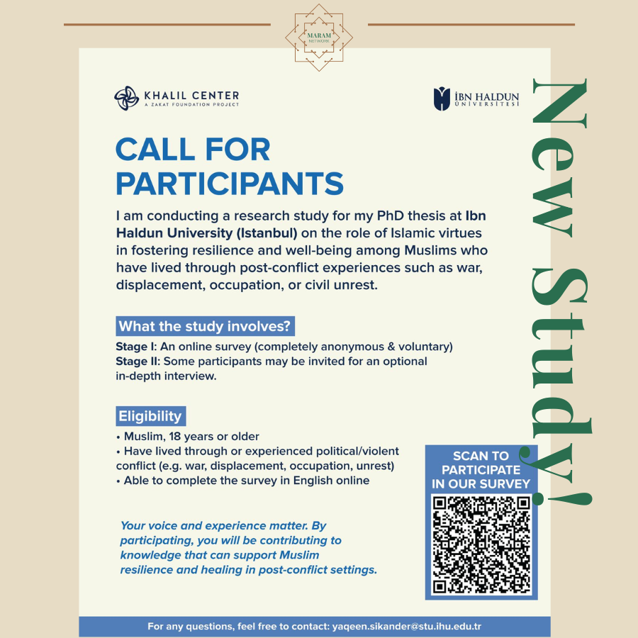 Calling all Muslim parents or primary caretakers of children ages 0-18 to take part in a 20-minute survey for a new study on Muslim parenting and how families approach raising children within an Islamic framework.